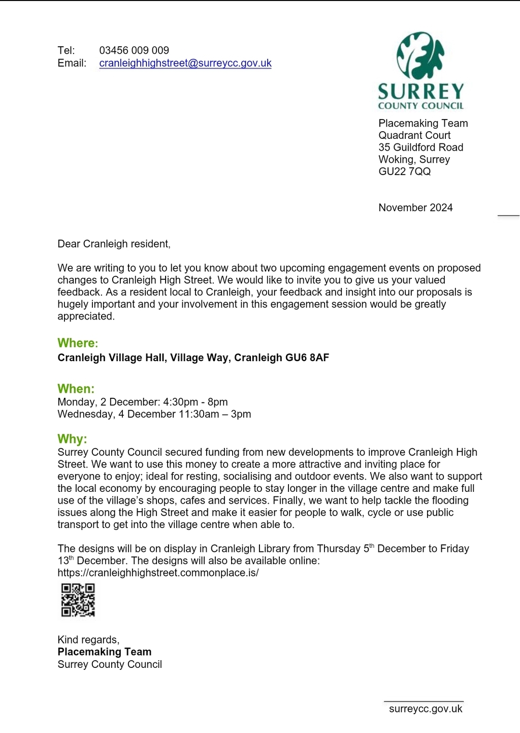 Letter from Surrey County Council to Cranleigh Residents (November 2024)